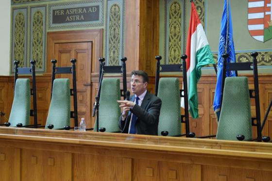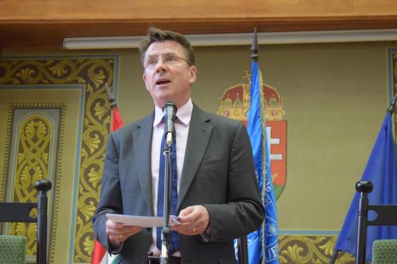 A magyar nyelvvizsgát letett brit nagykövet, Iain Lindsay Pécsen tartott előadást április 17-én a Közgazdaságtudományi Karon, a Halasy-Nagy József Aulában, ahol beszélt a Brexitről, Anglia és az Európai Unió, valamint Anglia és Magyarország kapcsolatáról is.