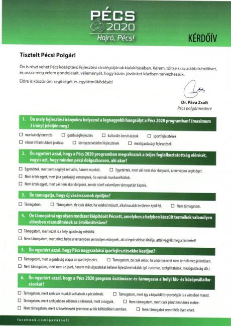 A héten postázzák a Pécs 2020-as kérdőíveket