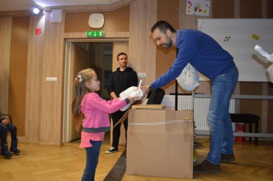 A rászoruló kisiskolásoknak a csomagokat az akció ötletgazdái, Siptár Dávid, az állatkert igazgatója és Herbert Gábor, a Pécsi Székesegyház Nagycsaládos Egyesületének elnöke adta át.