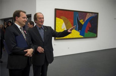 Aknay János Kossuth-díjas festőművész munkáiból nyílt kiállítás Az emlék jelene címmel Pécsett pénteken.