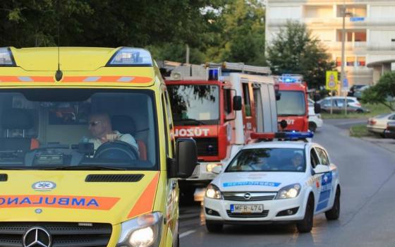 Rendőrök, tűzoltók, és több mentőkocsi érkezett kedd este nyolc előtt Pécsen a Nagy Jenő utcába az egyik négyemeletes ház elé.