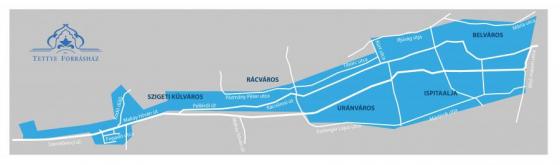 Szentmiklós, Fogadó, Uránváros, Szigeti városrészek, Ispitaalja és a Belváros területén.