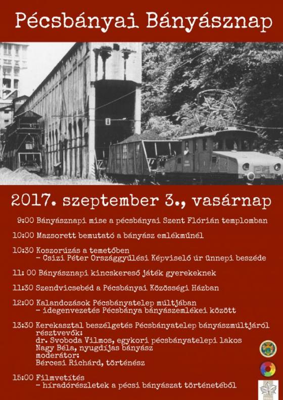 Szeptember első vasárnapján bányásznapi ünnepséget tartanak a Pécsbányatelepi Közösségi Ház szervezésében. Íme, a programok:
