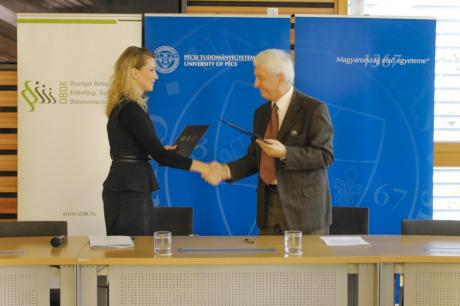 Az erről szóló dokumentumot Novák Krisztina, az OBDK főigazgatója és Bódis József, a PTE rektora a mai napon írta alá a Pécsi Tudományegyetemen.