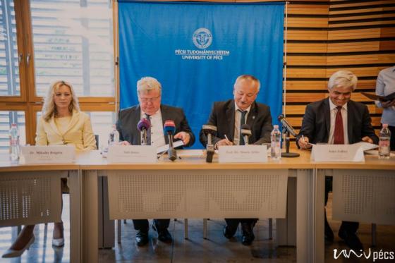 A kontraktust Süli János miniszter, Miseta Attila, az egyetem rektora és Jenei Zoltán, a PTE kancellár-ja látta el kézjegyével a pécsi egyetem Szenátusi Tanácstermében.