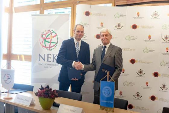 Együttműködik a jövőben a Magyar Kézilabda Szövetség (MKSZ) és a Pécsi Tudományegyetem (PTE). Az erről szóló megállapodást szerdán délelőtt látta el kézjegyével a baranyai megyeszékhelyen Marczinka Zoltán, a Magyar Kézilabda Szövetség sportigazgatója és Bódis József, a PTE rektora.
