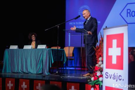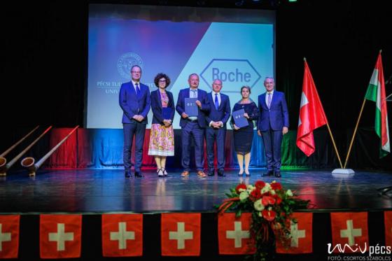 Jean-François Paroz svájci nagykövet az együttműködés kapcsán kiemelte: „Gyógyszeripari cégeink számítanak a magyar egészségügy magas szintű szaktudására. Klinikai kutatásaik révén nemcsak azt biztosítják, hogy a magyar betegek a leginnovatívabb kezelésekhez jussanak, hanem évente több milliárd forintos kiadástól is óvják a magyar egészségügyi rendszert. A mai este fénypontjaként tanúi lehetünk a Roche és a Pécsi Tudományegyetem közötti együttműködési megállapodás ünnepélyes aláírásának” – adott hangot örömének a nagykövet.