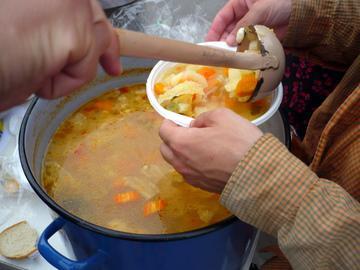 Ételt osztanak a rászorulóknak Pécsett