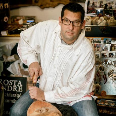 Rosta Endre, népi iparművész és a Busóudvar vezetője. Tizennégy éve foglalkozik maszkfaragással.