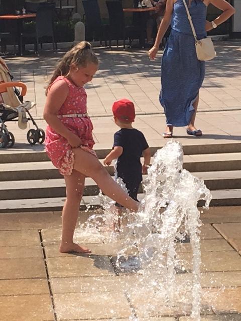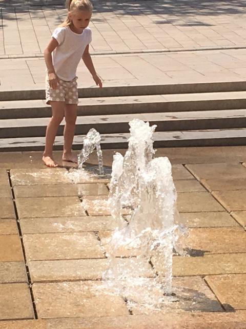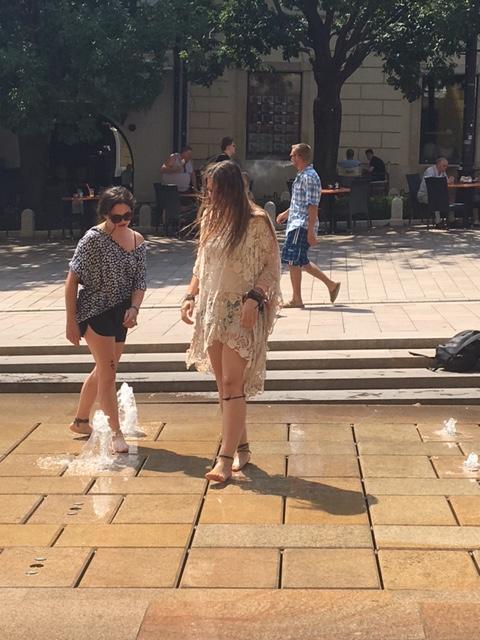 A nagy hőségben, sokan frissítették fel magukat a pécsi városháza előtti szökőkútnál. Volt olyan szülő, aki fürdőruhát hozott a gyerekének és úgy strandoltak. (képek)