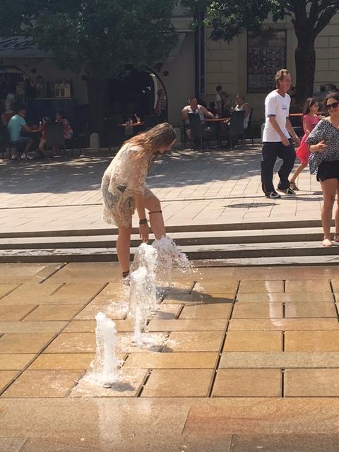 Fürdőzés, locsi-pocsi a pécsi városházánál