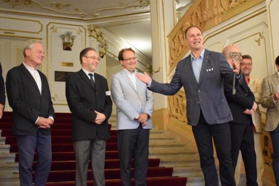 Páva Zsolt Pécs polgármestere és Hoppál Péter kultúráért felelős államtitkár után Bálint András is felszólalt a megnyitón és rövid beszédében háláját fejezte ki a díszvendégi címét és a POSZT több éves múltját, valamint szakmai és kulturális hasznát méltatta. Ezután a Pécsi Nemzeti Színház igazgatója, Rázga Miklós hivatalos keretek között átadta a kovácsolt színház-kulcsot Magyar Attilának, a POSZT-ot szervező Pécsi Országos Színházi Fesztivál Közhasznú Nonprofit Kft. ügyvezetőjének.