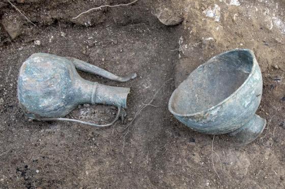 Két darab, teljesen ép állapotú rézedény – egy kiöntőcsöves kanna és egy talpas tál – került elő a pécsi Janus Pannonius utca 10. alatti telken, az egykori Rózsakert területén folyó ásatáson.