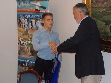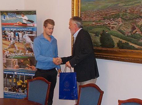 Folytatva az eddigi hagyományokat, ismét a pécsi városházán köszöntött három kiemelkedő teljesítményt nyújtó fiatal sportolót Páva Zsolt polgármester és Vári Attila, a Pécsi Sport Nonprofit Zrt. vezetője kedd délután.