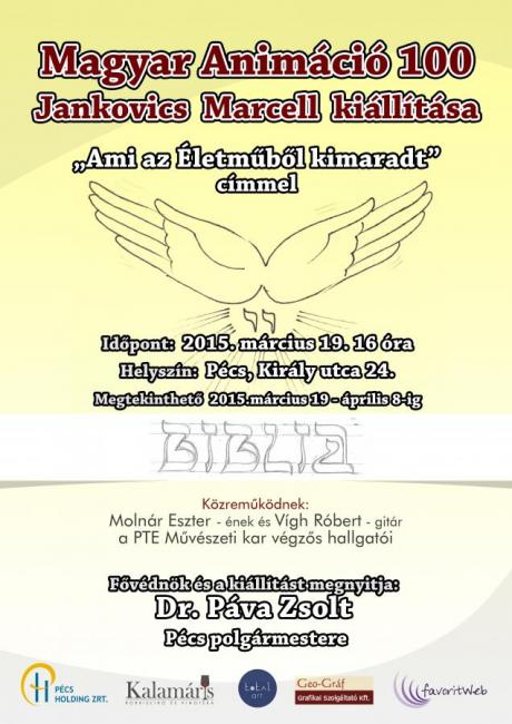 A kiállítás Jankovich Marcell munkásságának főleg azt a részét érinti, amit nagy nyilvánosság még eddig nem ismerhetett meg, eredeti figuratervek, jelenetek, forgatókönyvek a tervezett Biblia filmsorozatból.