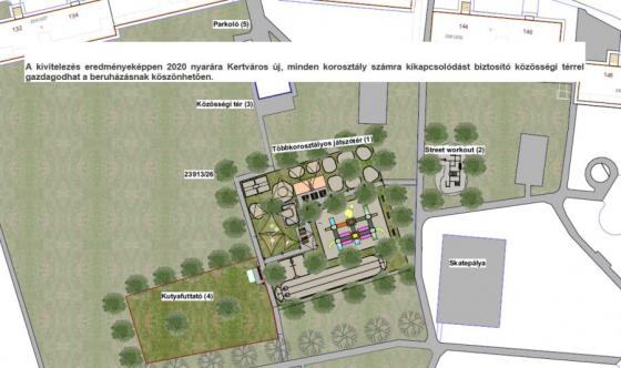 A kivitelezés eredményeképpen 2020 nyarára Kertváros új, minden korosztály számra kikapcsolódást biztosító közösségi térrel gazdagodhat a beruházásnak köszönhetően.