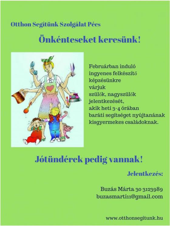 A Pécsett idén éppen 15 éves Otthon Segítünk Alapítvány keres olyan elhivatott önkénteseket, akik csatlakoznának kisgyermekes családokat segítő programjukhoz.