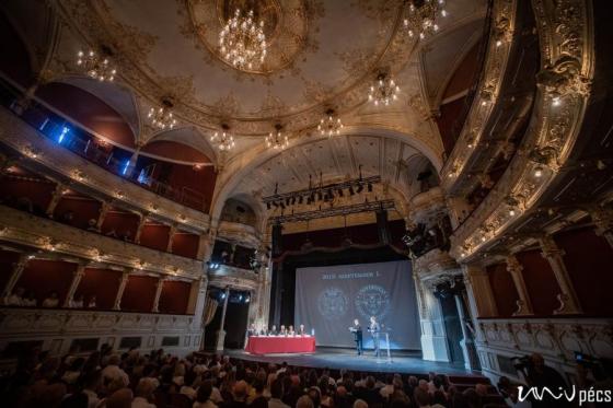 E kettős ünnepet ülte a Pécsi Nemzeti Színházban Pécs Megyei Jogú Város Önkormányzata ünnepi közgyűléssel, és a Pécsi Tudományegyetem (PTE) ünnepi tanévnyitó szenátusi üléssel.