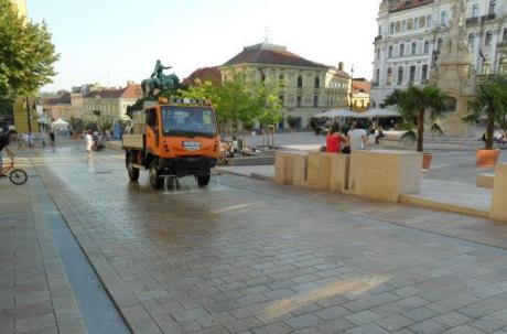 Péntektől szerda éjjelig a nagy hőség miatt 3 locsolókocsi hűti a belvárosi utakat, tereket, valamint a főbb közlekedési utakat a lakosság és a közlekedők hőérzetének csökkentése érdekében. A járművek délutánonként 5 órakor indulnak el és este 11 óráig locsolják folyamatosan vízzel az útburkolatokat. A locsolóautók összesen naponta 130 kilométeren, 308.000 négyzetméternyi útfelületet locsolnak fel 120.000 liternyi vízzel.