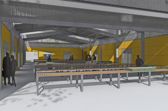 • egységes arculatú, korszerű műszaki állapotú fedett nyitott árusító épül meg acélváz-szerkezettel, korszerű könnyűszerkezetű homlokzati panelekkel burkolva;