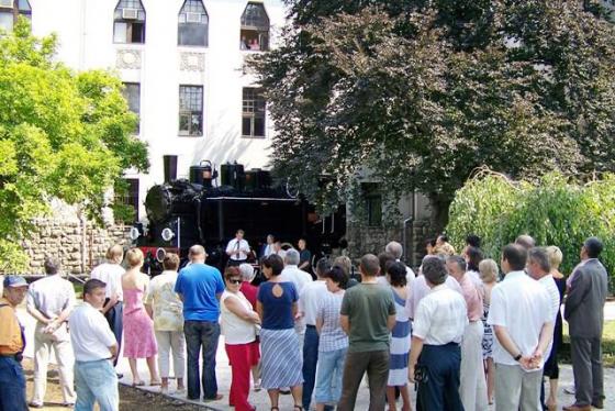 Az ünnepség hangulatát emelte, hogy a háttérből gőzösök indulási és közlekedési zaja hallatszott, a mozdony kéményéből pedig igazi füst szállt fel a magasba.