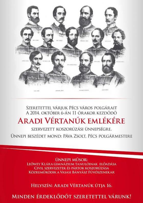 Százhatvanöt esztendővel ezelőtt végezték ki a 13 aradi vértanút, rájuk melékezünk 11.00-kor az Aradi vértanúk útja 16. szám előtt.