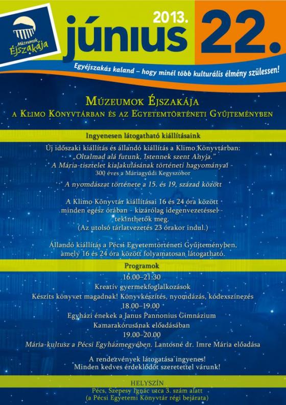 | Múzeumok éjszakája a Klimo Könyvtárban |