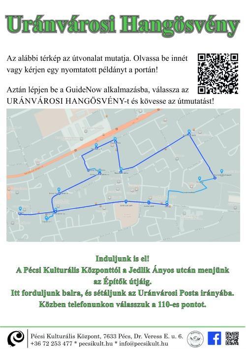 Nincs is másra szükség, mint egy okostelefonra, amelyre az ingyenes app.-ot letöltve, a Pécsi Kulturális Központtól indulva, az érdeklődő máris körbesétálhat a hangösvényen. Közben fotók, leírás, és hangos szöveg mesél a látnivalókról, vezet körbe az ajánlott útvonalon.