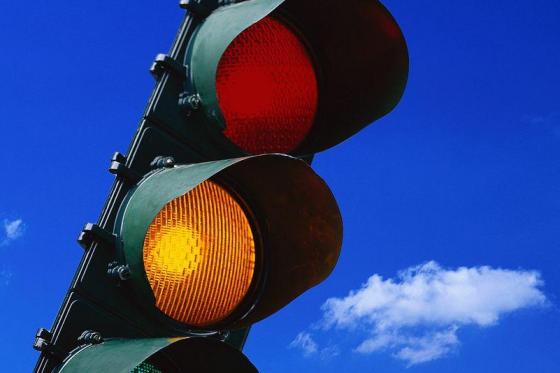 Meghibásodott alkatrész miatt sárgán villognak a jelzőlámpák Pécsett az Aidinger János út és a Sztárai Mihály út találkozásánál.