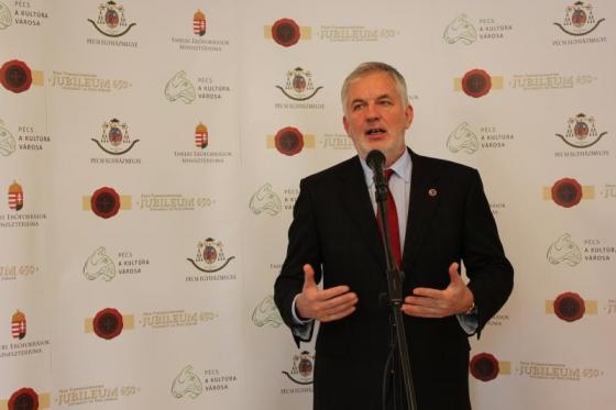 A sajtótájékoztatóval egybekötött ünnepélyes átadáson elhangzott, hogy szeretnék méltó módon kifejezni tiszteletüket az egyetem alapítói előtt, és ennek érdekében számos színvonalas programmal készülnek a szervezők, nemcsak az alapítás napjára, tehát szeptember elsejére koncentráltan, hanem egész évben. A teljesség igénye nélkül a jubileumi ünnepségsorozat keretében Pécsett rendezik meg a Magna Charta Observatory nemzetközi rektori konferenciát és a Magyarok II. Kulturális Világtalálkozóját, de a Nemzeti Agykutatási Program zárókonferenciájának is Pécs ad majd otthont. A fiatalok számára kiemelt esemény lesz a jubileum által áthatott Pécsi Egyetemi Napok, valamint az EFOTT, amelyet ugyan Velencén rendeznek, de a Pécsi Tudományegyetem lesz a hivatalos házigazda.