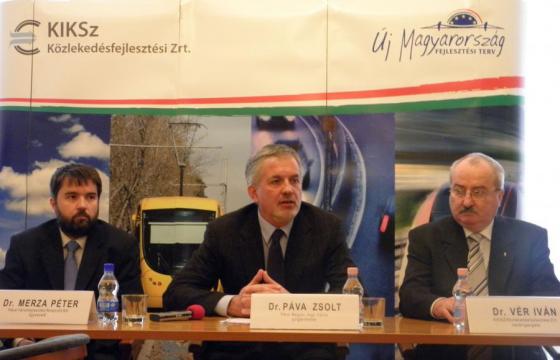 Merza Péter, Pécsi Városfejlesztési Nonprofit Kft. ügyvezetője, Dr. Páva Zsolt Pécs város polgármestere, Dr. Vér Iván a KIKSZ, Közlekedésfejlesztési Zrt. vezérigazgatója