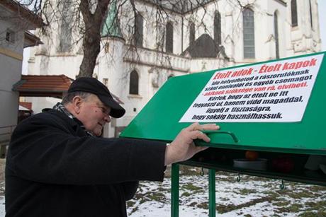 Ételt adok – ételt kapok. A gyűjtőládát civilek készítették. Fotó: Kuklis István