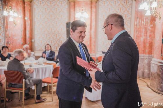 Dr. Sebestyén Andor, a Klinikai Központ elnöke Pro Patiente díjat adományozott sok éven át végzett kiemelkedő gyógyító, diagnosztikai, megelőző és innovációs tevékenységéért Dr. Bódisné Prof. Dr. Zámbó Katalinnak, a PTE KK Nukleáris Medicina Intézet korábbi vezetőjének, Prof. Dr. Czirják Lászlónak, a PTE KK Reumatológiai és Immunológiai Klinika leköszönő igazgatójának, továbbá Prof. Dr. Komoly Sámuelnek, a PTE KK Neurológiai Klinika előző vezetőjének.