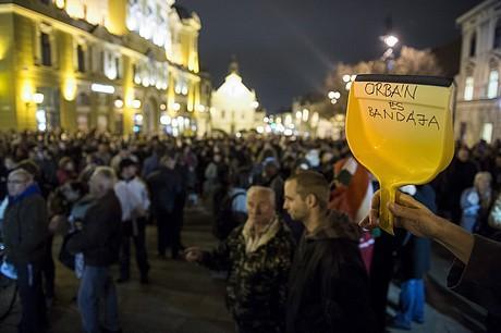 Hétfőn este hattól ismét tüntetők vették birtokba a Pécs főterét, létszámuk ez alkalommal volt a legnagyobb, közel ezren demonstráltak a Széchenyi téren. Nagy Bandó Anrás humorista és a Weöres-szobrot múlt héten liszttel leöntő Böszörményi István is felszólalt a megmozduláson.