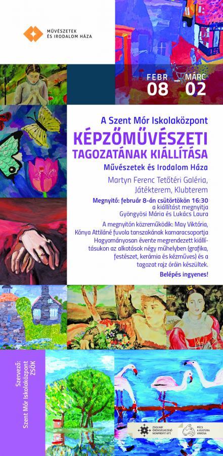 Évente rendez kiállítást a Szent Mór Iskolaközpont a képzőművészeti tagozatos gyermekek alkotásaiból. Az iskola művészeti képzésének elsődleges célja a gyermekek személyiségének kibontakoztatása. A művészetek átszövik a gyermekek mindennapjait, elmélyítik érzéseiket és egy olyan átfogó gondolkodásmódra tanítanak, amely szabad átjárást biztosít a tudományok között. A februári kiállításon a grafika, festészet, kerámia és kézműves műhelyben készült alkotásokat tekinthetik meg az érdeklődők a Művészetek és Irodalom Háza Martyn Ferenc tetőtéri galériájában.