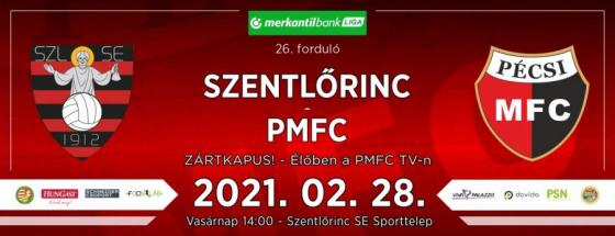 A Merkantil Bank Liga 26. fordulójában a Szentlőrinc otthonába látogat a PMFC. A két baranyai együttes találkozója február 28-án, vasárnap 14:00 órakor kezdődik, zárt kapuk mögött.