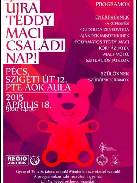Szombaton 9 – 14 óra között rendezi meg a Pécsi Tudományegyetem Általános Orvostudományi Kara a IV. Teddy Maci Családi Napot a PTE ÁOK Aulában.
