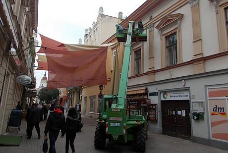 Csütörtökön leszerelték a Borza Endre által tervezett Király utcai terrakotta és homokszínű napvitorlákat. A sokak által kedvelt húsz óriási árnyékolót jövő tavasszal helyezik vissza a Színház tér mellé. Hasonló módon számolták fel a nyári kánikula enyhítésére kitalált Széchenyi téri oázisokat is.