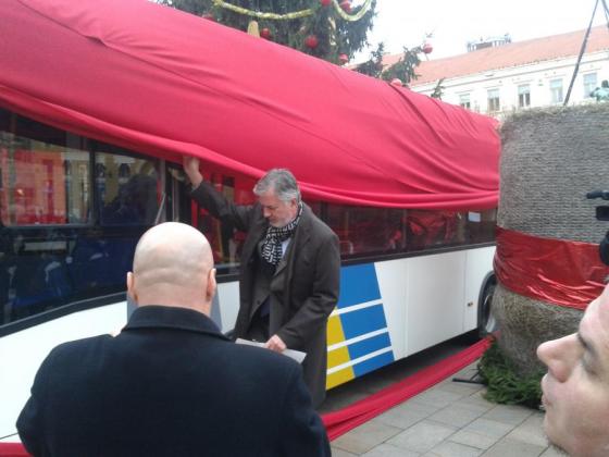 Reggelre a város fája alá ajándék érkezett. A Széchenyi téren áthaladó emberek törhették a fejüket, hogy mi lehet ez a hatalmas csomag, amit még elbírt a rénszarvasok szánja. Az óriási meglepetést délután háromkor bontotta ki Páva Zsolt polgármester. A „városvezetés Mikulása” egy buszt hozott!