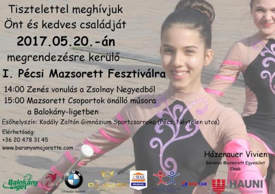 A fesztivál 2017.05.20-án kerül megrendezésre. A Zsolnay negyedből menetelnek át a csoportok 14-órától a Balokány-ligetbe egy fúvószenekar kíséretében, majd előadják táncaikat egészen délután 6 óráig!